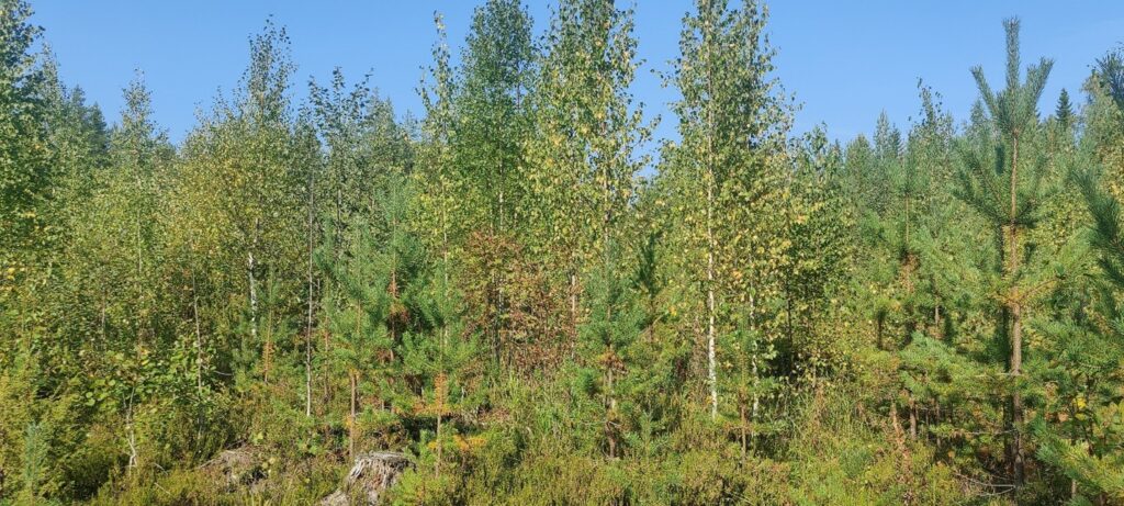 Luontaisesti metsittynyt avohakkuualue Uimaharjun metsässäni. Metsäkuviolla on tehty maanpinnan käsittely, mutta ei viljelyä.