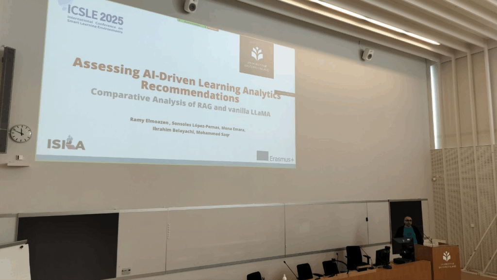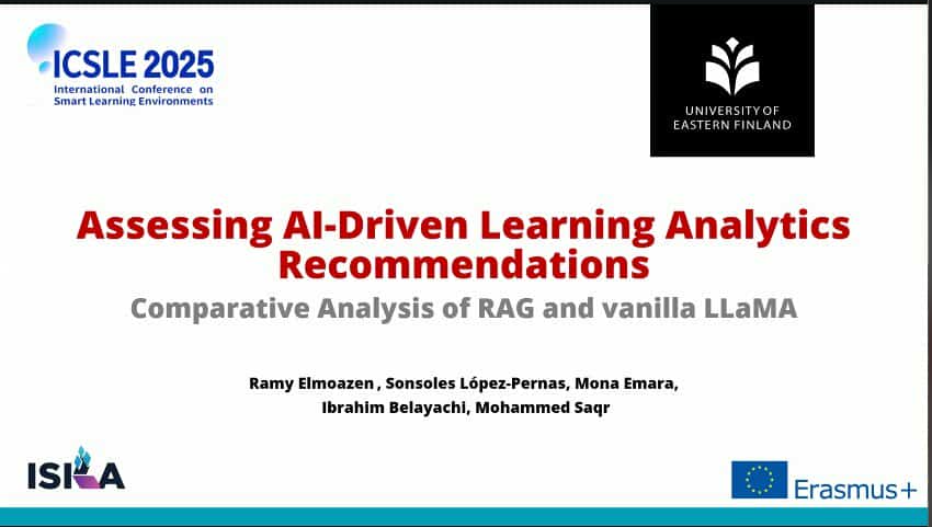 ISILA Member Ramy Elmoazen has presented a study titled “Assessing AI-Driven Learning Analytics Recommendations: Comparative Analysis of RAG and vanilla LLaMA” at the International Conference on Smart Learning Environments (ICSLE 2025).