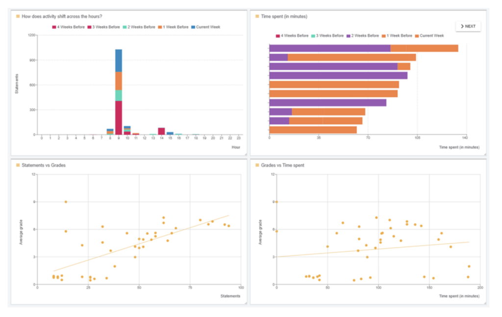 Each course has integrated the University’s Learning Management System, Learning Locker as a Learning Record Store, while Self-Regulated Learning (SRL) surveys are conducted to collect and analyze student activity data. Learning analytics dashboards are used to identify students at risk of disengagement or low achievement, prompting personalized and general interventions during key points in the semester.
