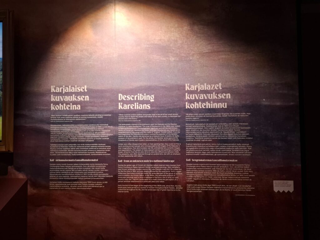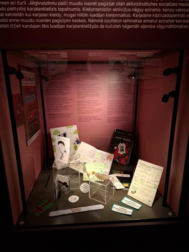 Samazes pertis piäzet sežo lugemah suomekse, karjalakse da angliekse, midä Karjala da karjalan kieli aktiivizile karjalankielizile merkitäh. Ližäkse muzein kävijöil on mahto kodvazekse astuo hillembäzeh tilah astumah ymbäri Karjalan mändyy. Karjalan mändy on imminkummaine puu, kudai pagizou muzeikävijän korvah karjalakse. Sidä ymbäri astujes piäzet kuundelemah kui virkehty, mugai ezimerkikse festivualiloi da himoruadoloi koskijua karjalankielisty vuoropaginua. Maksau kuunnella!