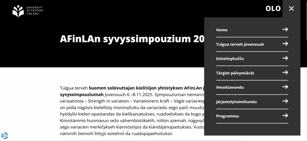 Päivännouzu-Suomen yliopiston karjalan opastajat da specialistat tahtotah omassah ruavol ozuttua, gu karjala on elävy da kehittyi kieli, kuduadu voi käyttiä jogahizes kontekstas. Konferensiet da toizet tiijollizet tapahtumat ollah täh hyvii kohtii. Karjalan kieli nägyygi ylen hyvin Suomen sobivuttajan kielitiijon yhtistyksen AFinLAn syvyssimpouziumas, kudai pietäh Jovensuus kylmykuun ezmäzel nedälil.
