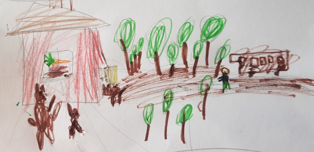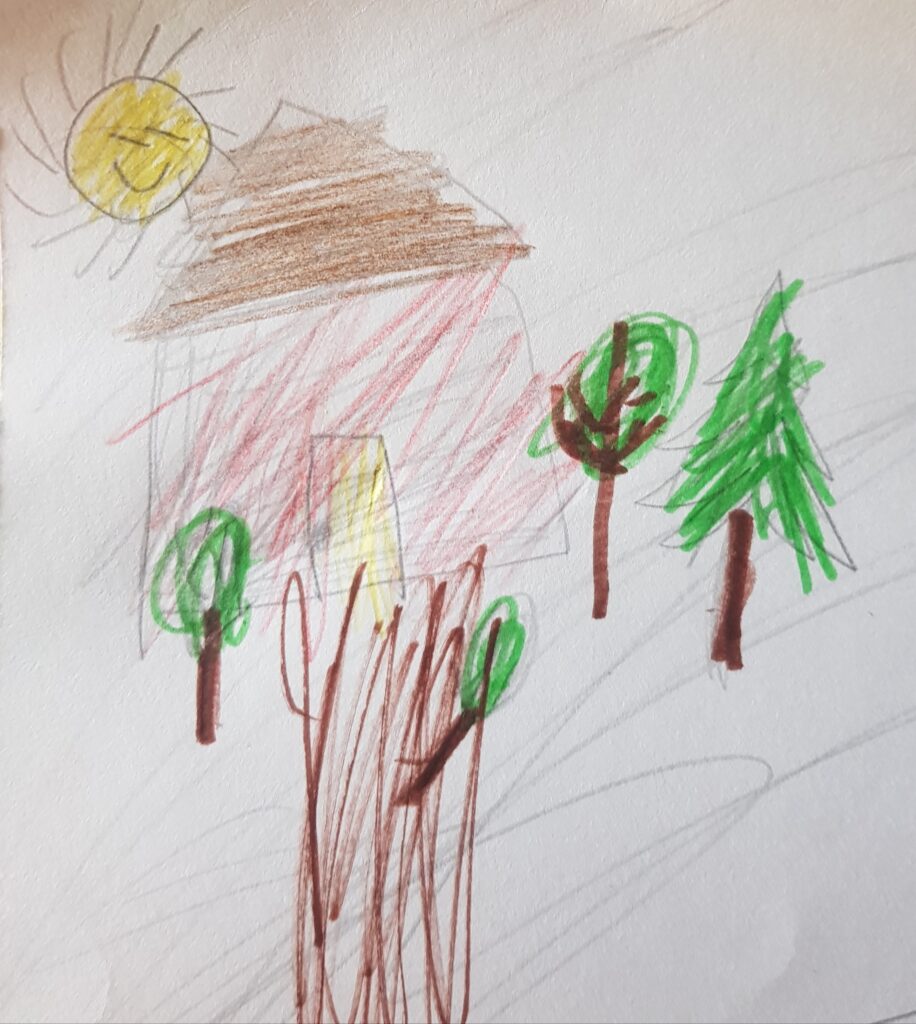 Elin lapsennu fermal, kudai oli järven rannal. Meil oli monenluadustu žiivattua: lehmiä, kanua da heboinegi oli. Minul da minun vellel oli igäeruo vaiku vajai vuozi, da myö ainos kižaimmo kahteikeskei, gu susiedoi ei olluh ihan lähäl.