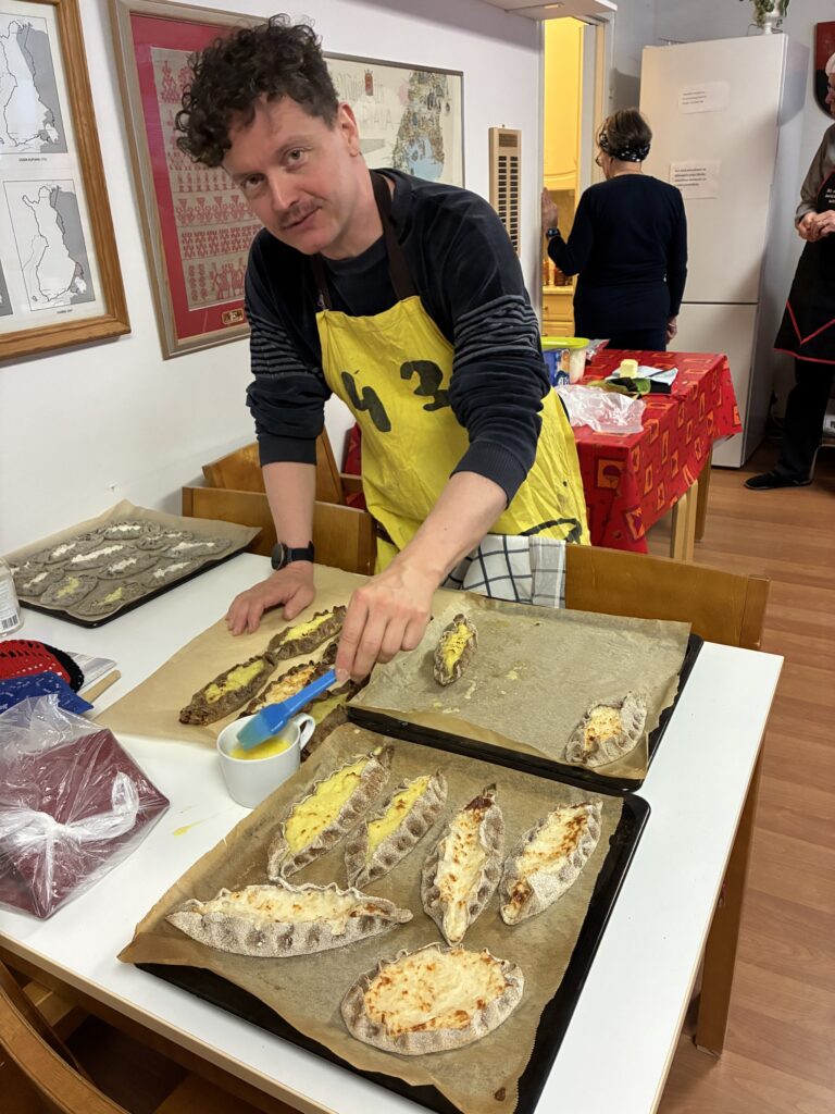 Paginpertis šipainiekkua pastamah meidy opasti Sanna-Riikka Knuuttila. Ga häi oli valmehekse luadinuh kartohku- da riissusyväimen, sendäh gu net pidi olla vilut ja niilöin luadimizeh olis mennyh äijän aigua. Meidy oli ”piiraipertis” nenga kymmene hengie. Pastandan aigua smietiimmö, mis on roinnuh šipainiekku-sana, suomeksehäi net ollah ”karjalanpiirakat” da ven’akse ”kalitkat”. Da tiijustin sit myöhembä, gu vikse šipaija-verbis da se viey šipainiekoin luajindah šipaimal, yhtistämäl.