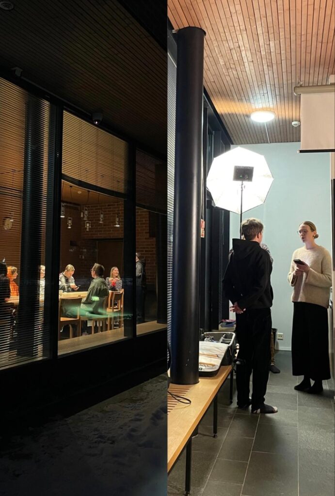 Välliä atmosfierua huomattih sežo yliopiston viestindyruadajat. Sen puoles vastavundukerdu oligi poikkevukselline, gu saimmo gostikse ristikanzoi, kuduat luajitah somesyväindyö yliopiston Instagram- da toinah TikTok-käyttäjile. Opiimmo paista välläh da luonnollizeh tabah, hos meidy kuvattih suurel kameral, da erähäs kohtas kuvuajat kyzeltih, kui minuu vedäjänny, mugai erästy paginpertin ozanottajua kommentiiruimah kamerale karjalakse paginpertii da sidä, mindäh karjalaine kul’tuuru da karjalan kieli kiinnitetäh meijän da äijien toizien Suomes eläjien mielii. Kuvavuksien aigua mustelimmo meijän aijembii vastuajii kogemuksii sego sidä, gu paginpertiläzet ollah jo harjavuttu kudamittumihgi tv-, kino- da someprojektoih. Net sanotah sit, gu karjalan kieli tovengi on nouzemas Suomes da gu karjalankielizien mielii tahtotah kuulta äijis eri kohtis.