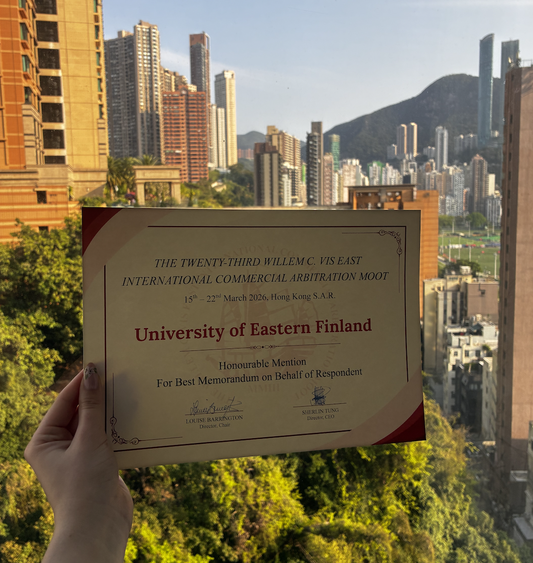 Willem C. Vis International Commercial Arbitration Moot (Vis Moot) on yksi maailman arvostetuimmista oikeustapauskilpailuista. Kilpailuun osallistuu vuosittain noin 400 tiimiä eri yliopistoista ympäri maailmaa. Willem C. Vis East International Commercial Arbitration Moot (Vis East Moot) on Hongkongissa järjestettävä Vis Mootin sisarkilpailu. Tänä vuonna Itä-Suomen yliopiston Vis Moot -tiimi osallistui ensimmäistä kertaa molempiin finaaleihin.