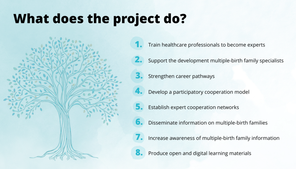 There are more twins in the world today than ever before. Globally, 2-4 % of all pregnancies are twin pregnancies. In Finland, there were 43 882 births in 2024, of which 549 were multiple births. Twins were born in 543 families and triplets in six families. Multiple births account for 1.3% of all births in Finland. This has remained relatively stable over the years, as elsewhere in Europe. The information and support needs of multiple-birth families arise from parenting and meeting the needs of more than one child of the same age. Multiple-birth families are special families with individual needs that require individual solutions. Health and social care professionals in maternity and child health clinics and hospitals play a significant role in supporting the parenting and the growth and development of children in multiple-birth families, as well as in promoting the health and well-being of the whole family. Previous research has demonstrated the need for the development of multiple-birth nursing in different kinds of nursing settings.