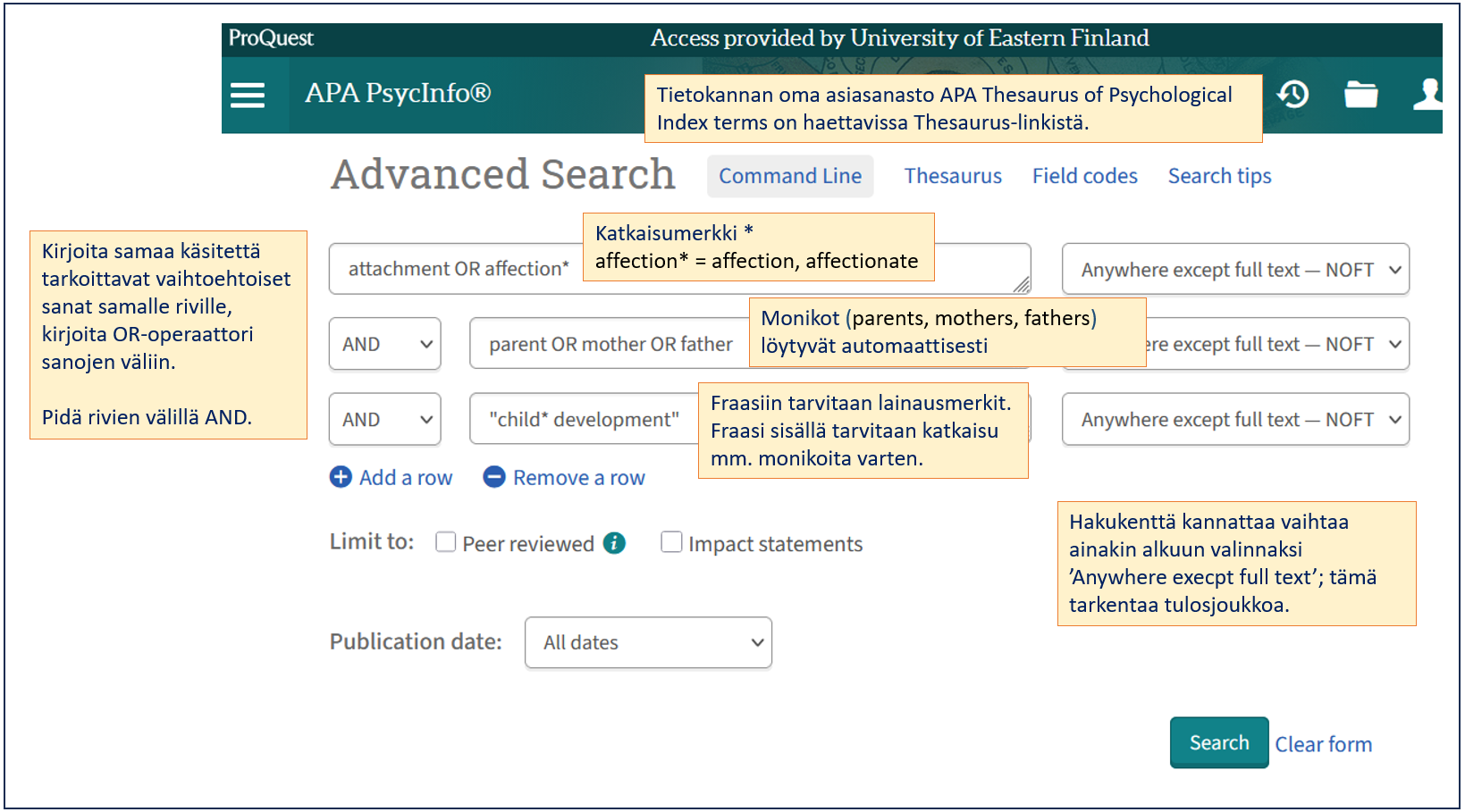 PsycInfo. Hakuaihe: Vanhempien osoittaman kiintymyksen merkitys lapsen kehitykselle.